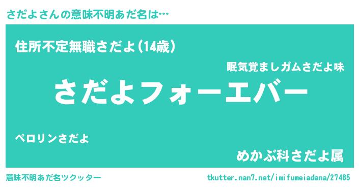 | 女子向けラノベタイトル風あだ名 | 『さだよの雑貨屋さん』『さだよ恋絵巻』 |