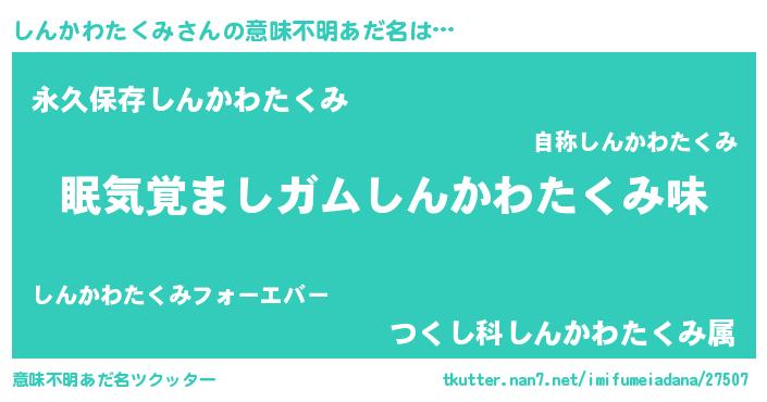 | ヘコむあだ名 | 『しんかわたくみ(笑)』『つくし』 |