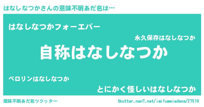 | 男性向けラノベタイトル風あだ名 | 『はなしなつかに滅ぼされるだけの簡単なお仕事です』 |