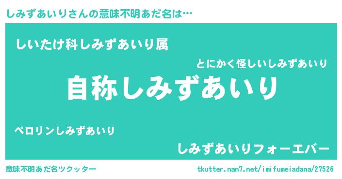 | 胡散臭い通販商品みたいなあだ名 | 『ガンによく効く高麗人参…その名も「しみずあいり」』 |
