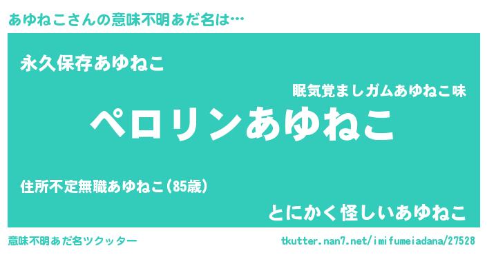 | 欧米人風あだ名 | 『マイケルあゆねこ』『ウサインあゆねこ』 |