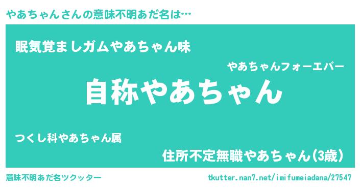 | 男性向けラノベタイトル風あだ名 | 『やあちゃんに滅ぼされるだけの簡単なお仕事です』 |