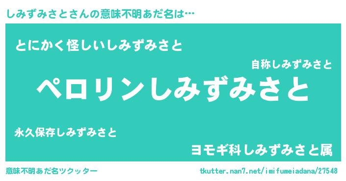 | 伝説のあだ名 | 『伝説のスナイパーしみずみさと』 |