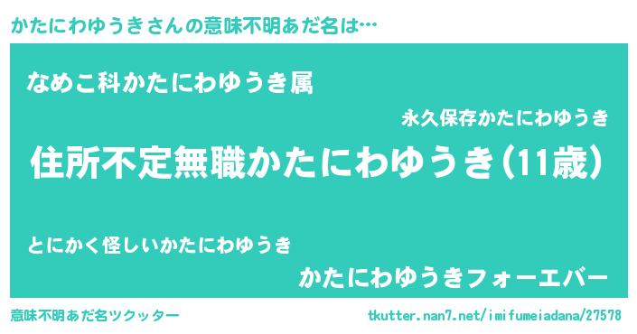 | 男性向けラノベタイトル風あだ名 | 『この素晴らしい世界にかたにわゆうきを!』 |