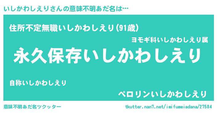 | 欧米人風あだ名 | 『いしかわしえり・ステッグマイヤー』 |