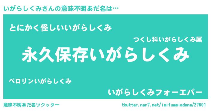 | ヘコむあだ名 | 『いがらしくみ(笑)』『いがっ子』 |
