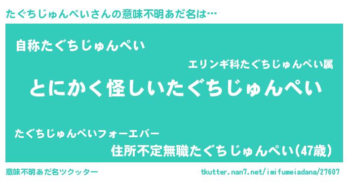| 胡散臭い通販商品みたいなあだ名 | 『信頼と実績のサプリメント…その名も「たぐちじゅんぺい」』 |