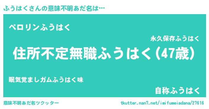 | 男性向けラノベタイトル風あだ名 | 『この素晴らしい世界にふうはくを!』 |