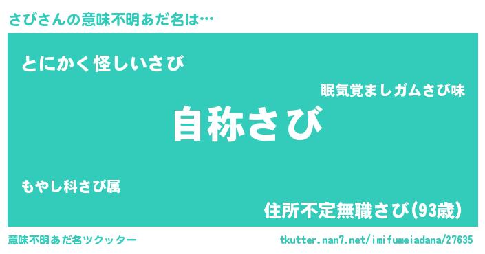 | 男性向けラノベタイトル風あだ名 | 『Re:さびから始める異世界生活』 |