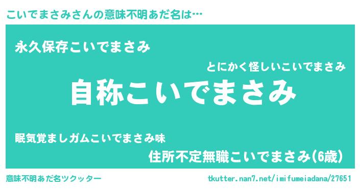 | 男性向けラノベタイトル風あだ名 | 『Re:こいでまさみから始める異世界生活』 |