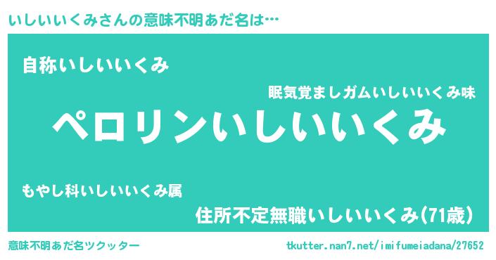 | 男性向けラノベタイトル風あだ名 | 『うちのいしいいくみが世界を掌握している!』 |