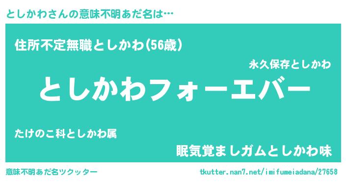 | 欧米人風あだ名 | 『としかわ・ステッグマイヤー』 |