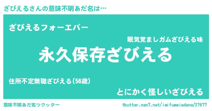 | 男性向けラノベタイトル風あだ名 | 『ざびえるという概念が存在しない退屈な世界 』 |