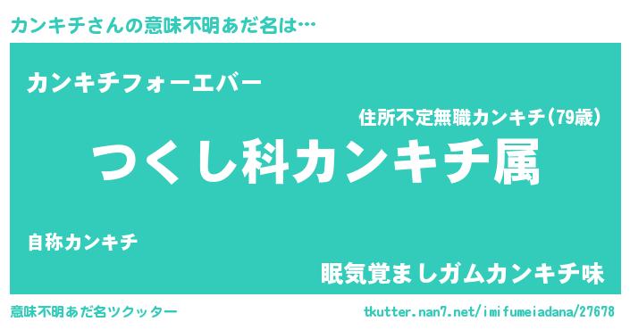 | 男性向けラノベタイトル風あだ名 | 『カンキチに滅ぼされるだけの簡単なお仕事です』 |