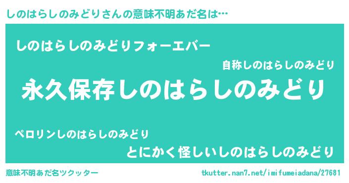 | 料理風あだ名 | 『しのはらしのみどりの炊き込みご飯』 |