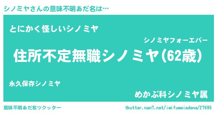 | 男性向けラノベタイトル風あだ名 | 『この素晴らしい世界にシノミヤを!』 |