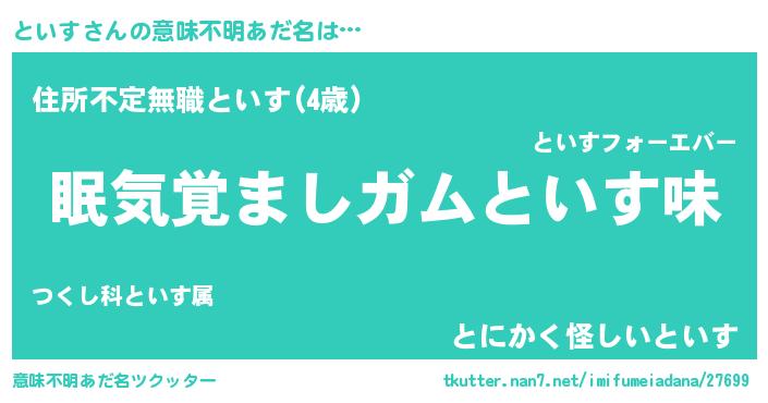 | ヒーロー風カッコイイあだ名 | 『慈愛の使者といす』『仮面トイダー』 |