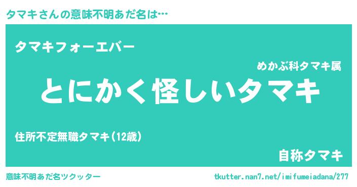 男性向けラノベタイトル風あだ名 | 『タマキの嫁は女の子じゃないと思った?』 |