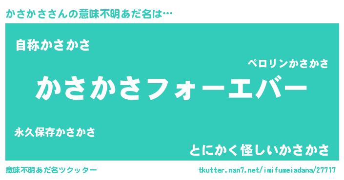 | ファンタジー風あだ名 | 『エターナルカサカサー』『ゼカサトゥ』 |