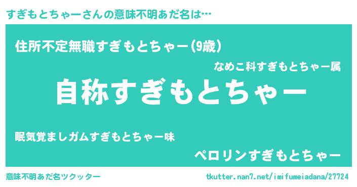 | 男性向けラノベタイトル風あだ名 | 『Re:すぎもとちゃーから始める異世界生活』 |