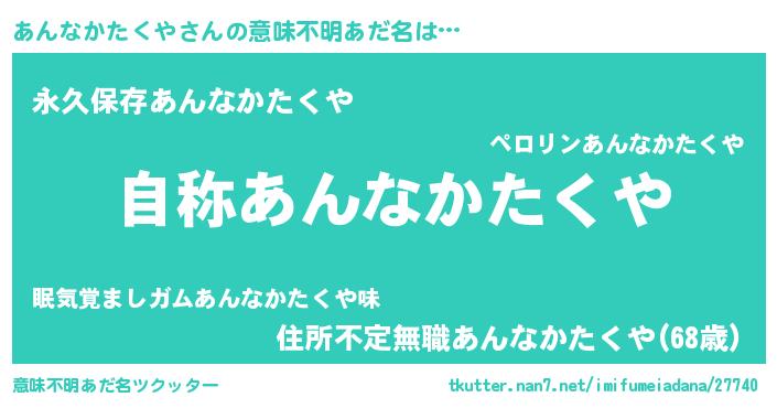 | 女子向けラノベタイトル風あだ名 | 『あんなかたくやアンティーク』 |
