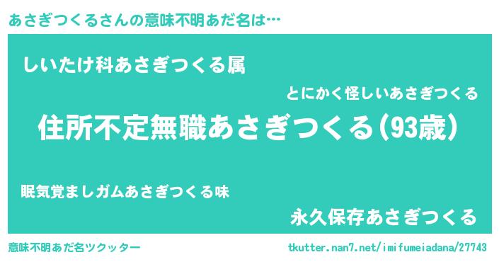 | ヘコむあだ名 | 『あさぎつくる(遠い目)』『あさ太郎』 |