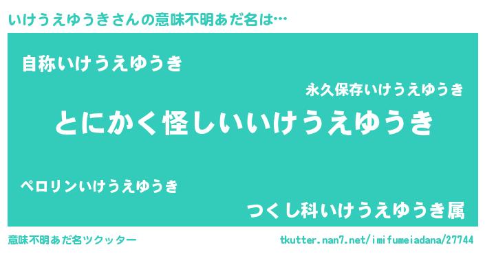 | 男性向けラノベタイトル風あだ名 | 『いけうえゆうきの嫁は女の子じゃないと思った?』 |