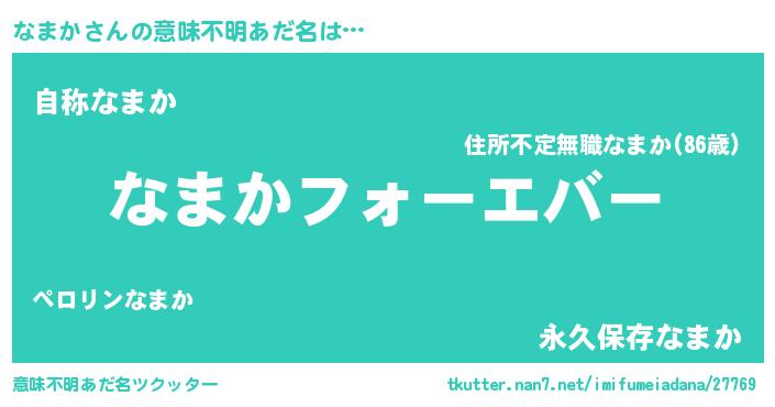 | 欧米人風あだ名 | 『なまか・ステッグマイヤー』 |