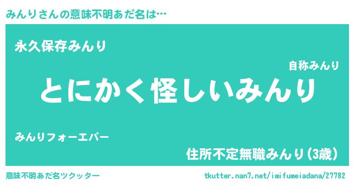 | 男性向けラノベタイトル風あだ名 | 『みんりの嫁は女の子じゃないと思った?』 |