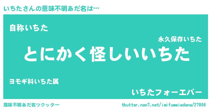 | 男性向けラノベタイトル風あだ名 | 『いちたの嫁は女の子じゃないと思った?』 |