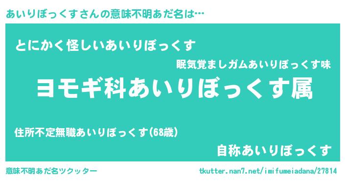 | ポケモン風あだ名 | 『アイキング』『ヒアイリボックス』 |