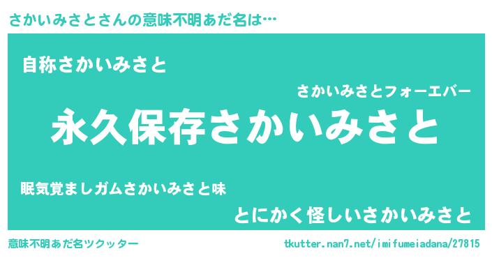 | 男性向けラノベタイトル風あだ名 | 『さかいみさとという概念が存在しない退屈な世界 』 |