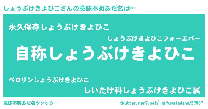 | 男性向けラノベタイトル風あだ名 | 『Re:しょうぶけきよひこから始める異世界生活』 |