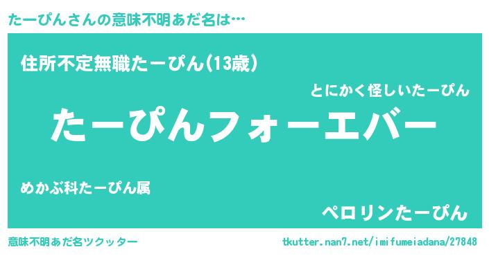 | 女子向けラノベタイトル風あだ名 | 『たーぴんの雑貨屋さん』 |