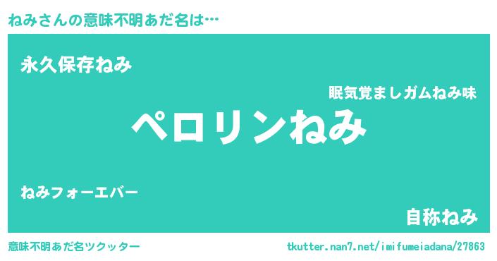 | 男性向けラノベタイトル風あだ名 | 『ねみの憂鬱』『魔法科高校のねみ』 |