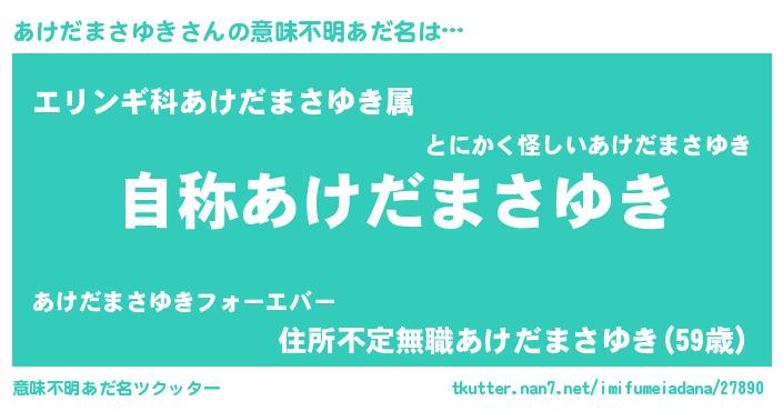 | 男性向けラノベタイトル風あだ名 | 『あけだまさゆきに滅ぼされるだけの簡単なお仕事です』 |