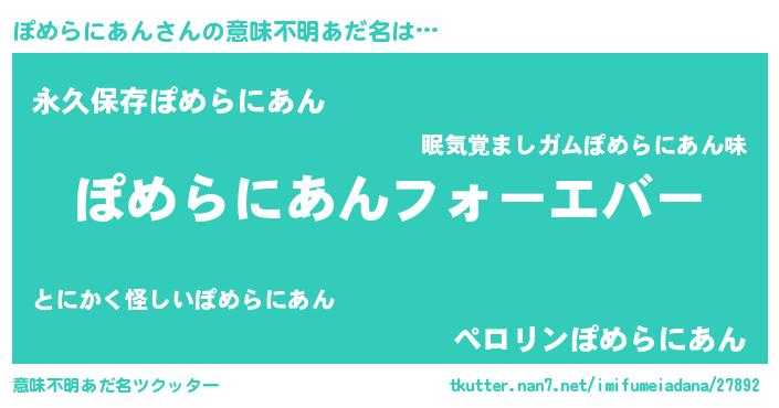 | ヘコむあだ名 | 『豆乳』『ぽめらにあん(笑)』 |