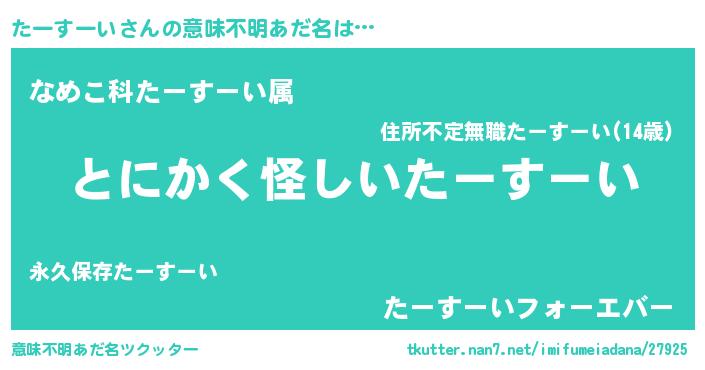 | 男性向けラノベタイトル風あだ名 | 『たーすーいの嫁は女の子じゃないと思った?』 |