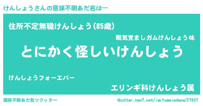 | ポケモン風あだ名 | 『ヒケンショウ』『ケーンイ』 |