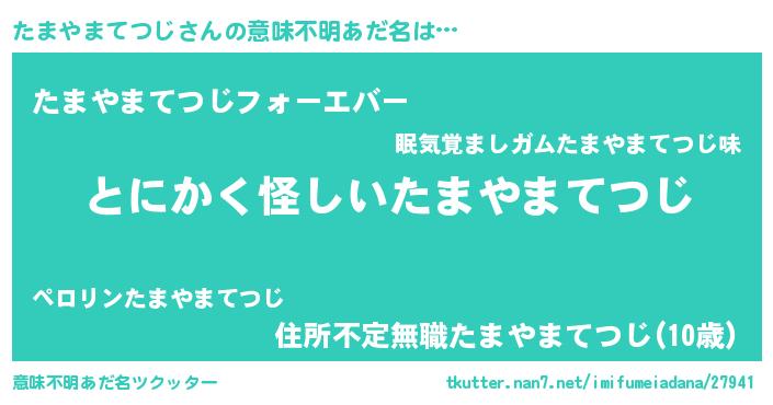 | 女子向けラノベタイトル風あだ名 | 『たまやまてつじの卵を拾いまして』 |