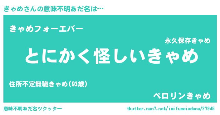 | 男性向けラノベタイトル風あだ名 | 『きゃめの嫁は女の子じゃないと思った?』 |