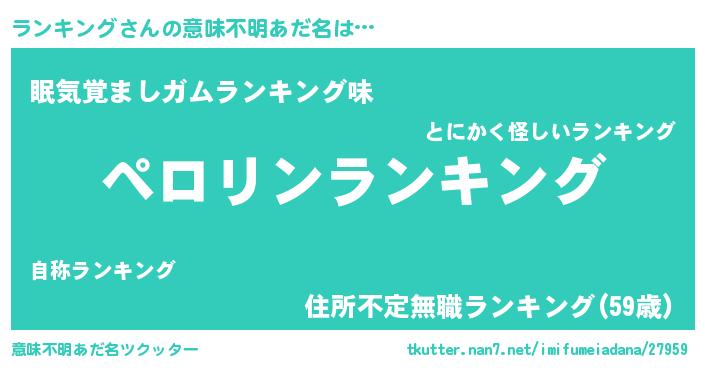 | 男性向けラノベタイトル風あだ名 | 『ランキングの憂鬱』 |
