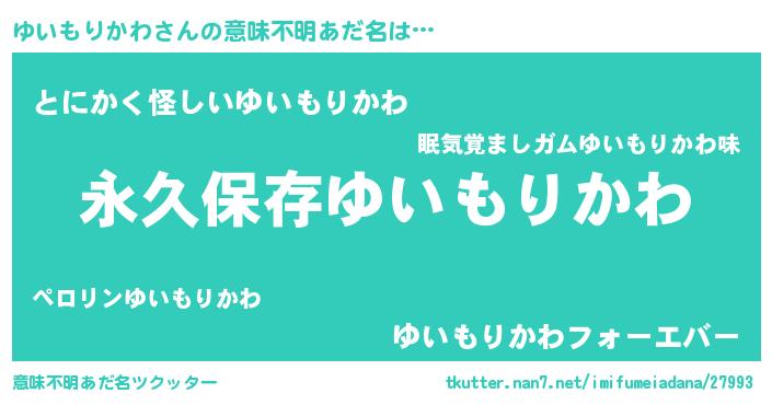 | 男性向けラノベタイトル風あだ名 | 『ゆいもりかわという概念が存在しない退屈な世界 』 |