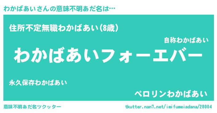 | 欧米人風あだ名 | 『わかばあいクリステル』 |