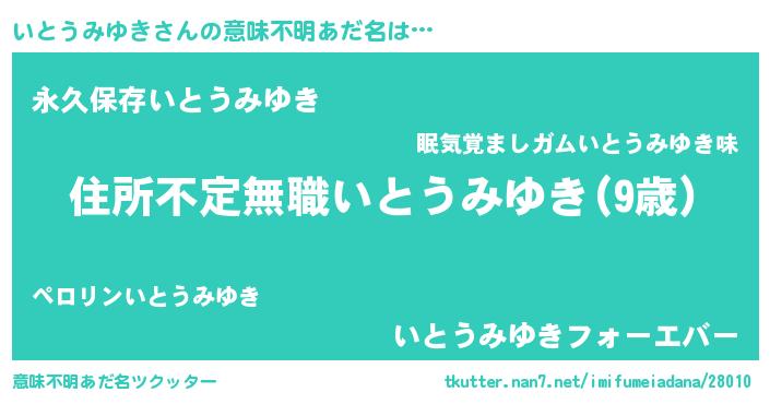 | 男性向けラノベタイトル風あだ名 | 『魔弾の王といとうみゆき』 |