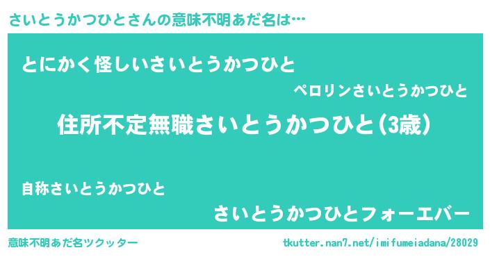 | ポケモン風あだ名 | 『サーイイ』『ヒサイトウカツヒト』 |