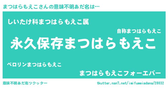| ヒーロー風カッコイイあだ名 | 『ネオマツハラモエコ』 |