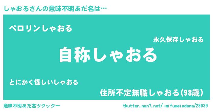 | 女子向けラノベタイトル風あだ名 | 『しゃおるなんてお断りですっ。』 |