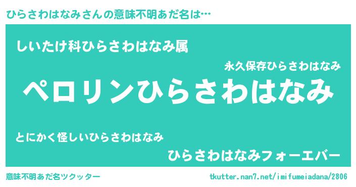 | 胡散臭い通販商品みたいなあだ名 | 『必ず成功する水晶球…その名も「ひらさわはなみ」』 |