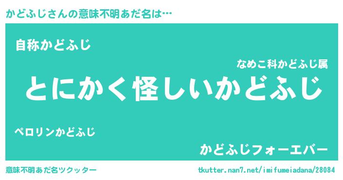 | 男性向けラノベタイトル風あだ名 | 『ダンジョンにかどふじを求めるのは間違っているだろうか』 |